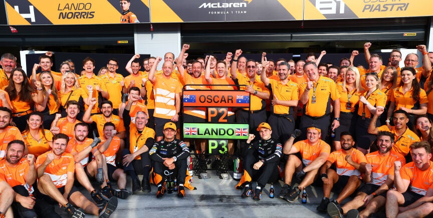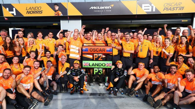 "No podría soñar con una alineación mejor dentro y fuera de la pista. Los dos más rápidos del mundo y, además, los más buena gente. Esa es la manera McLaren. Sois una combinación casi de unicornio", destacó Brown sobre la combinación de Norris y Piastri.