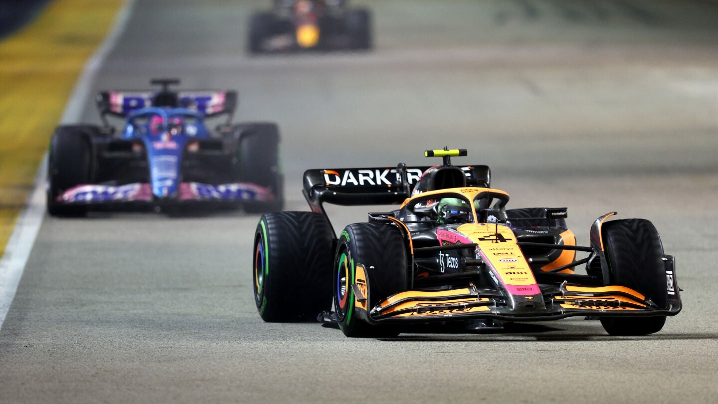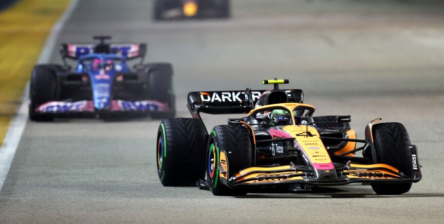 McLaren no se fiaba de Fernando Alonso en Singapur. Lando Norris pasó en la salida al asturiano y tras el coche de seguridad provocado por Nicholas Latifi y Guanyu Zhou, el pelotón se agrupó y se recortaron las distancias. Aunque parecía que Alonso no tenía tanto ritmo como tuvo en la clasificación, McLaren envió a piloto un mensaje por radio avisando del peligro que suponía tener a Alonso detrás.