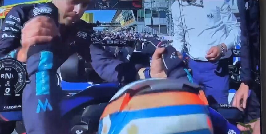 Tal era el desgaste que al llegar al pit-lane, mecánicos de Williams tuvieron que ayudar al piloto a salir de su monoplaza ya que este no podía por sus propios medios.
