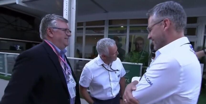 Y en el peor día de Aston Martin en todo 2023 apareció él. Apareció Otmar Szafnauer. Apareció el exjefe de Racing Point y también de Alpine, de donde fue despedido. Donde coincidió, además, con Fernando Alonso. Con un Alonso con el que fue más que crítico. Sí, ese mismo. El rumano, en Austin, ha sido 'cazado' charlando justo delante del hospitality del equipo de Silverstone.