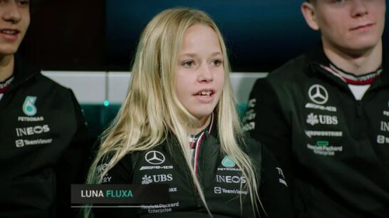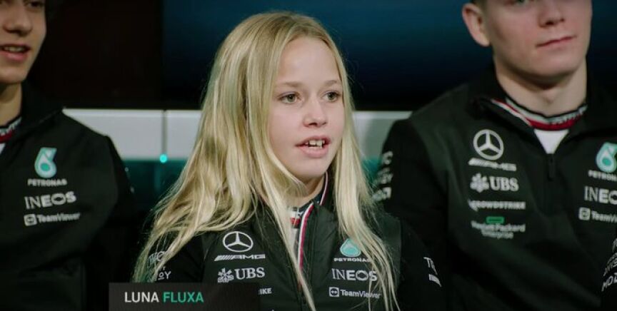 Luna Fluxá es uno de los nombres propios de la presentación de Mercedes. En la apertura del telón de la marca alemana de su nuevo monoplaza de F1, la joven española de 11 años compartió espacio con Lewis Hamilton, heptacampeón del mundo, y ya aparece como una de las grandes promesas del automovilismo.