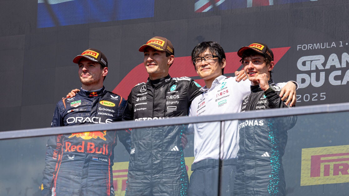 Antes de la ceremonia de entrega de trofeos, George Russell, Max Verstappen y Andrea Kimi Antonelli se sentaron en la sala de descanso previo al podio. Ahí pudieron ver repetidos los mejores momentos que dejó la carrera de Montreal.