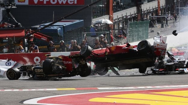 Cerca estuvo de acabar en tragedia el comienzo del Gran Premio de Bélgica 2012. Esa carrera en la que Fernando Alonso vio cómo el Lotus de Romain Grosjean rozaba su cabeza, en un accidentado inicio en el que se señaló directamente a un piloto galo al que sancionaron, por su maniobra, en el GP de Italia.