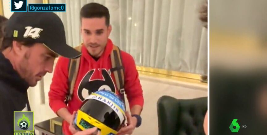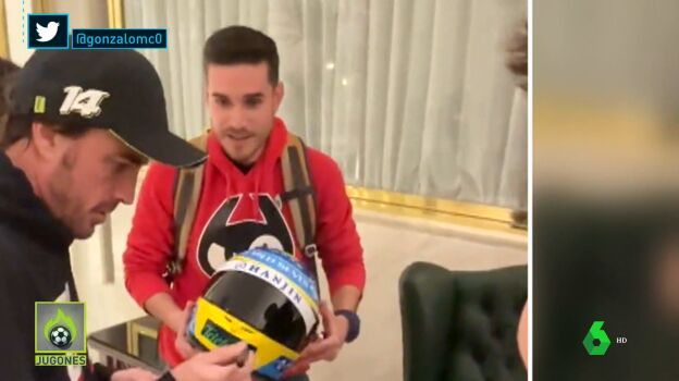 Reto conseguido: así logró este aficionado que Fernando Alonso le firmara el casco tras los test de Jerez