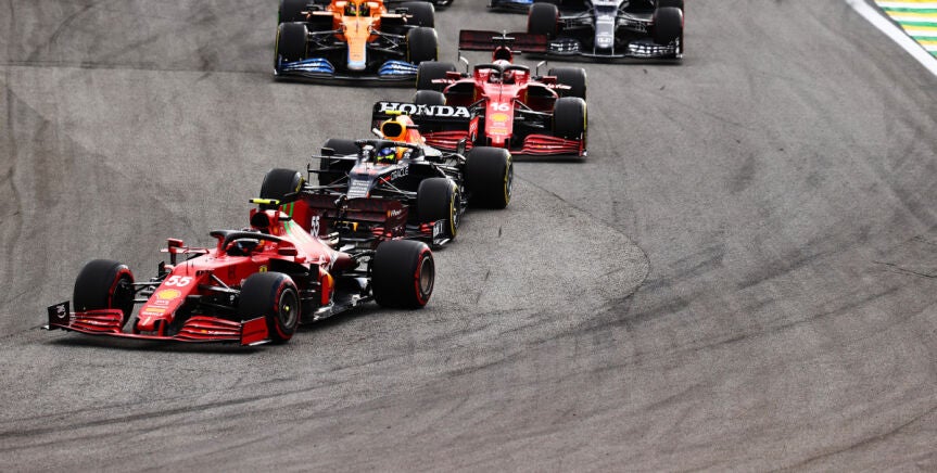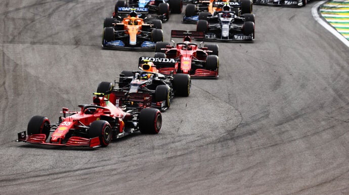 Carlos Sainz fue uno de los grandes protagonistas de la prueba al sprint de la Fórmula 1 en el GP de Brasil. El de Ferrari, en Interlagos, hizo una salida bestial que parece más propia de la PlayStation que del mundo real. En una sola vuelta pasó de ser quinto a segundo firmando un arranque que es ya de los mejores de 2021.