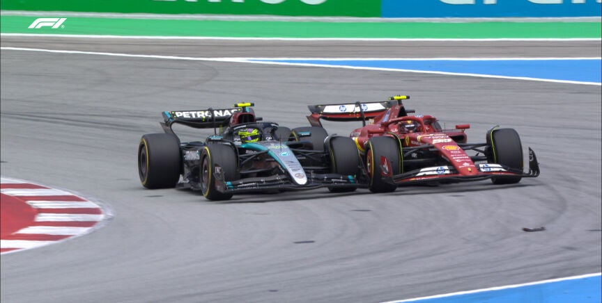 En la vuelta 19 del Gran Premio de España Lewis Hamilton adelantó a Carlos Sainz y sufrieron un encontronazo en la pista. El británico, que le ganó la posición, le echó fuera. Y Carlos protestó de manera muy contundente por radio, pidiendo a la FIA una investigación.