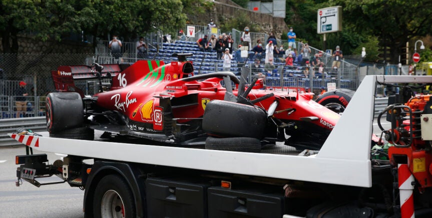 El monegasco, directamente, se ha cargado el coche. Ha destrozado por completo la dirección y el alerón delantero después de tocarse con un muro, perder el control y chocar de frente contra las protecciones. Es similar al accidente de Latifi este mismo año.