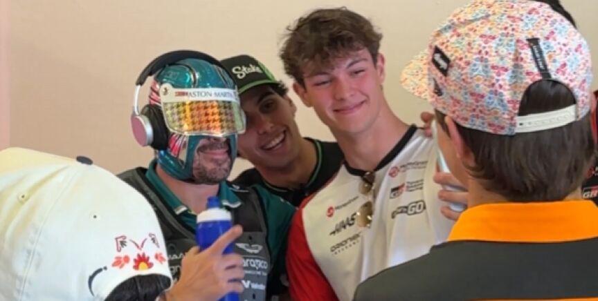 El piloto de Aston Martin apareció con una máscara de lucha con los colores de Aston Martin y causó furor entre sus compañeros.