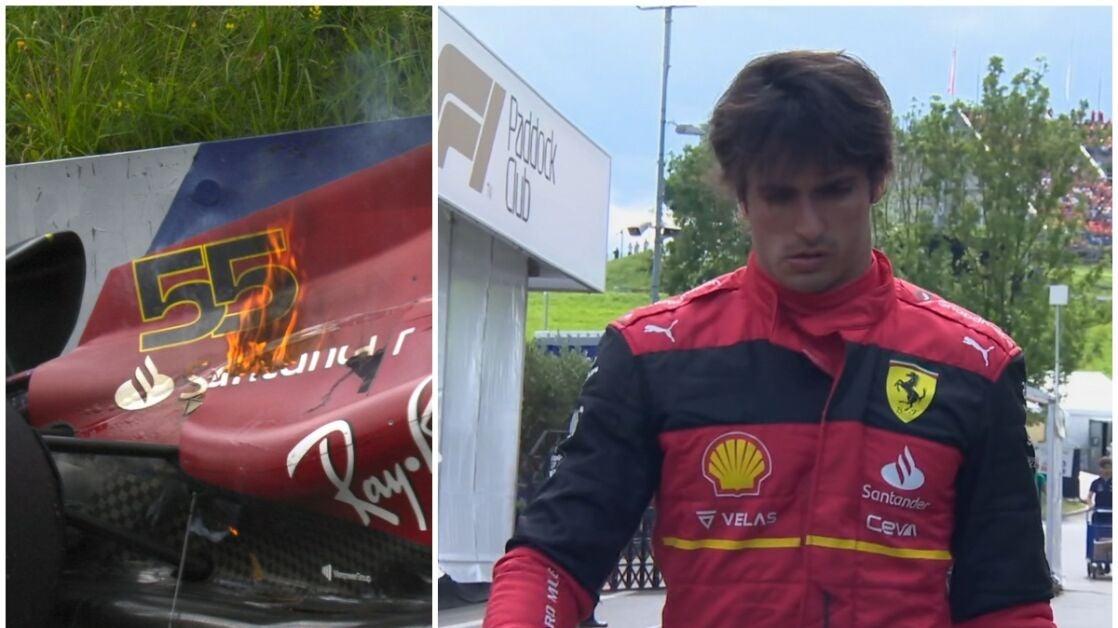 Carlos Sainz no ha podido terminar el GP de Austria. El motivo, que su motor ha, directamente, reventando haciendo además que el Ferrari terminase envuelto en llamas y completamente quemado. El madrileño, entre el fuego, pidió ayuda a los comisarios para parar el coche... pero tardaron muchísimo.