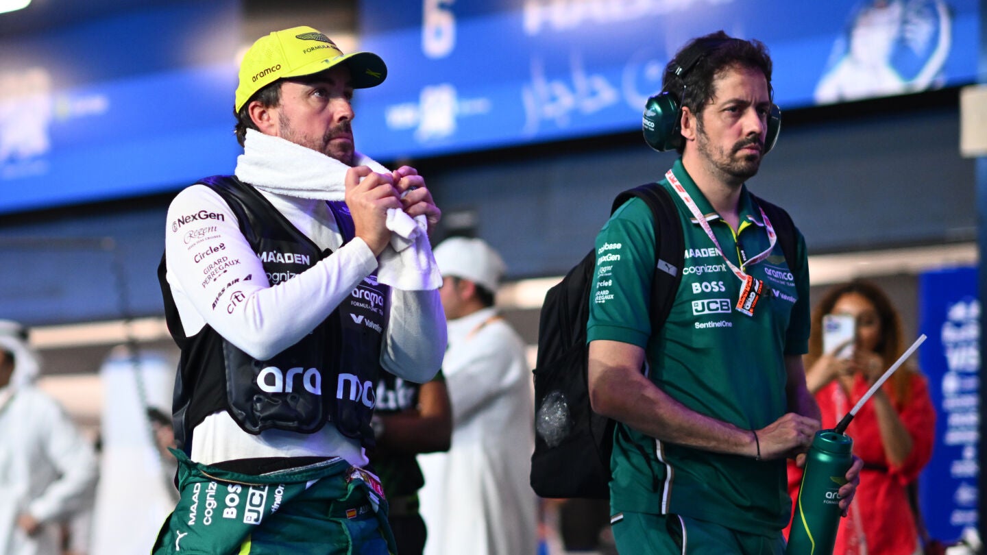 Fernando Alonso lo pasó muy mal en el Gran Premio de Arabia Saudí. El calor, la humedad... y el ir a tope toda la carrera para quedarse a sólo un pasito de puntuar. Su imagen después de la carrera regresando al paddock de Aston Martin lo decía todo.