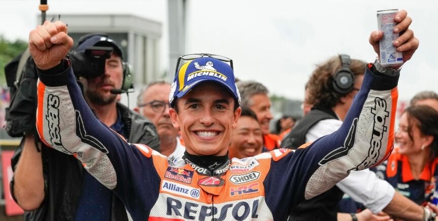 La lluvia retrasó la clasificación de MotoGP (y Moto2) más de la cuenta, pero cuando la climatología permitió la reanudación de la acción en pista, Marc Márquez consiguió la pole position en el Gran Premio de Japón. El '93' volvió a ser el más rápido el sábado 1.071 días después, desde que lo hiciera precisamente en el circuito nipón en 2019.