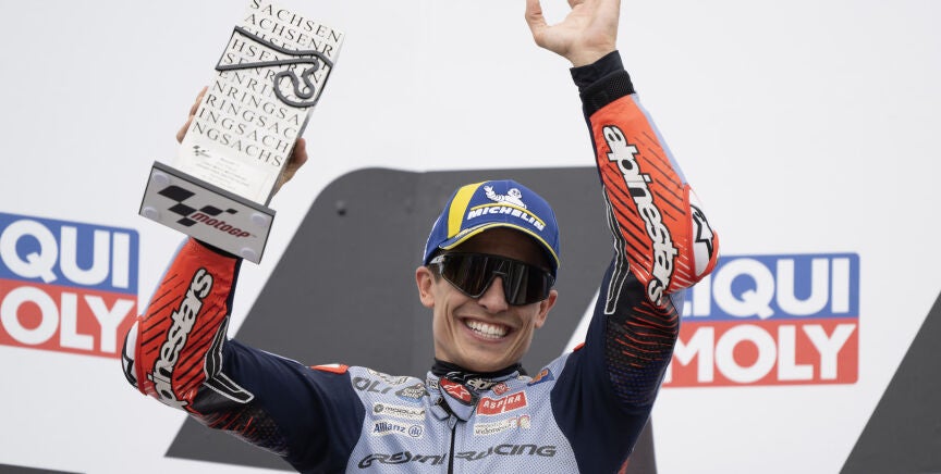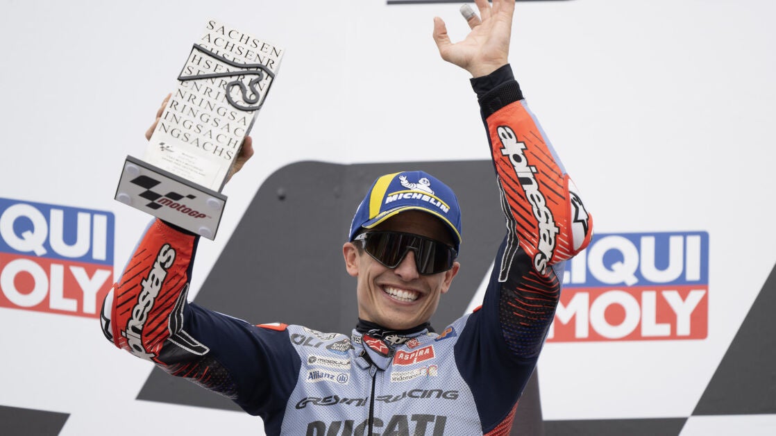 "Vamos a por el siguiente, uno. Mínimo uno", ha dicho el piloto de Gresini, que subió al podio en Alemania junto a su hermano Alex Márquez por primera vez en toda su carrera. Una fiesta tremenda para el equipo Gresini en el podio y también después.