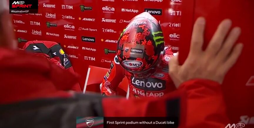 Una tarea que se ve amenazada por el ritmo de Bezzecchi. El de Aprilia lideró la 'sprint' en Phillip Island y es cuarto en el Mundial a tan solo ocho puntos del número 63. La situación ha llevado al límite al de Ducati que después de una temporada complicada se mostraba cabizbajo y abatido al finalizar la prueba.