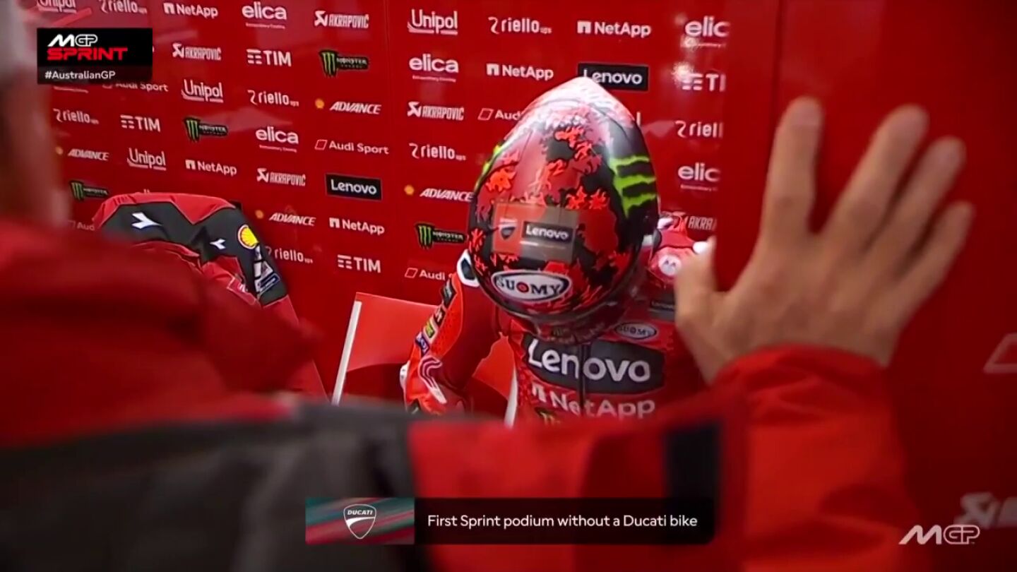El piloto italiano finalizó la carrera al sprint en penúltima posición y Ducati cerró la primera prueba de la temporada sin moto en el podio.