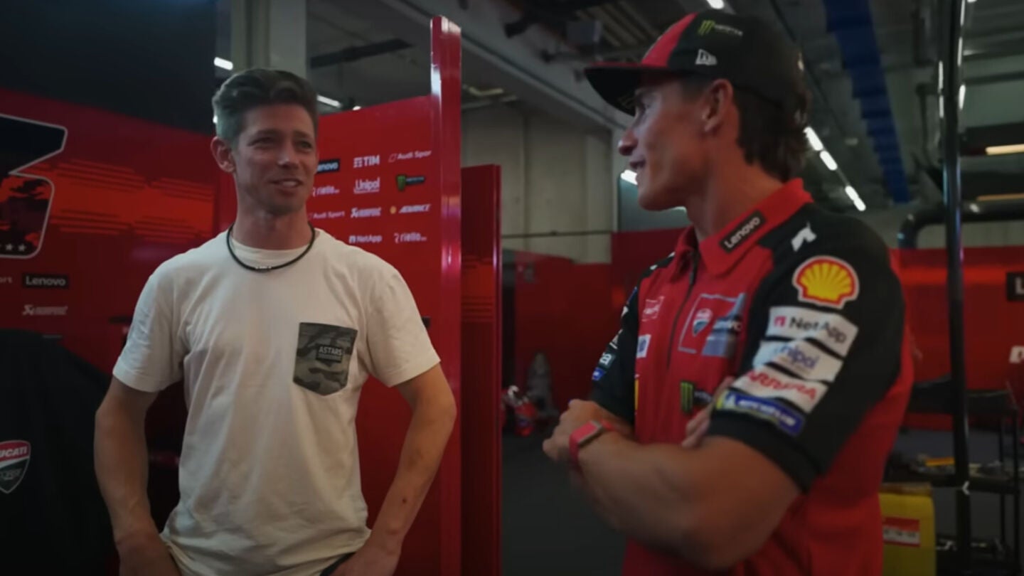 Antes de que se produjera otro paseo de Marc Márquez en el Gran Premio de Austria, tuvo un encuentro muy especial. En el box de Ducati tenían la visita especial de Casey Stoner, expiloto de la competición que fue dos veces campeón del mundo en MotoGP.