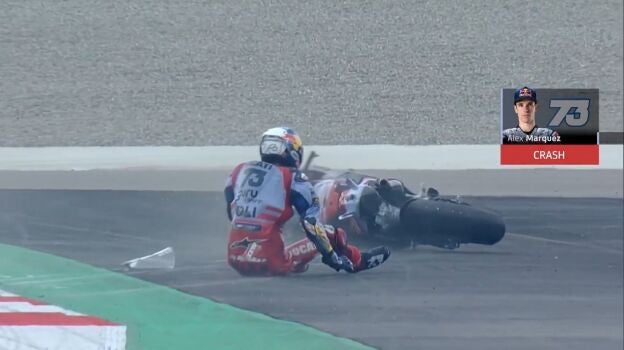 Álex Márquez se ha roto tres costillas tras caerse en el GP de la India. El catalán de Gresini, eso sí, no pierde su gran sentido del humor a pesar del tremendo dolor que siente y de no poder correr en semanas.
