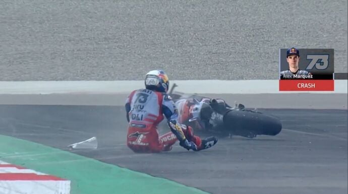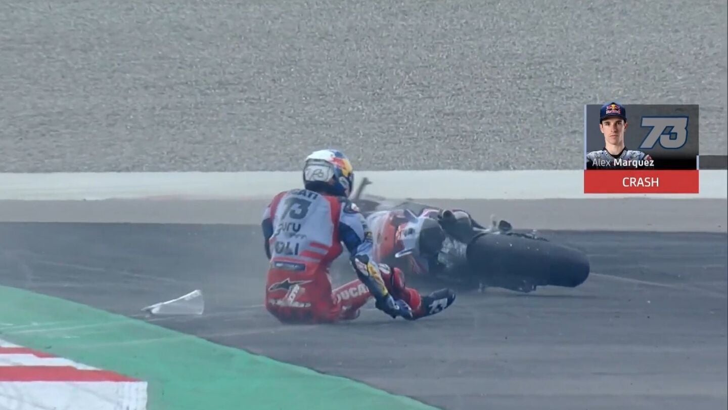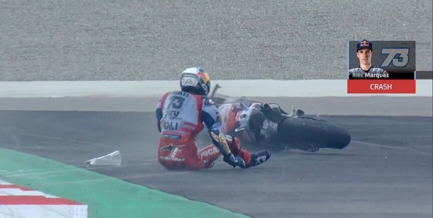 Álex Márquez no va a estar ni en el GP de la India ni tampoco en el de Japón. El español de Gresini ha sufrido una dura caída en la que ha caído sobre sus costillas, fracturándose hasta tres tras el TAC que le han realizado en la pista de Buddh.