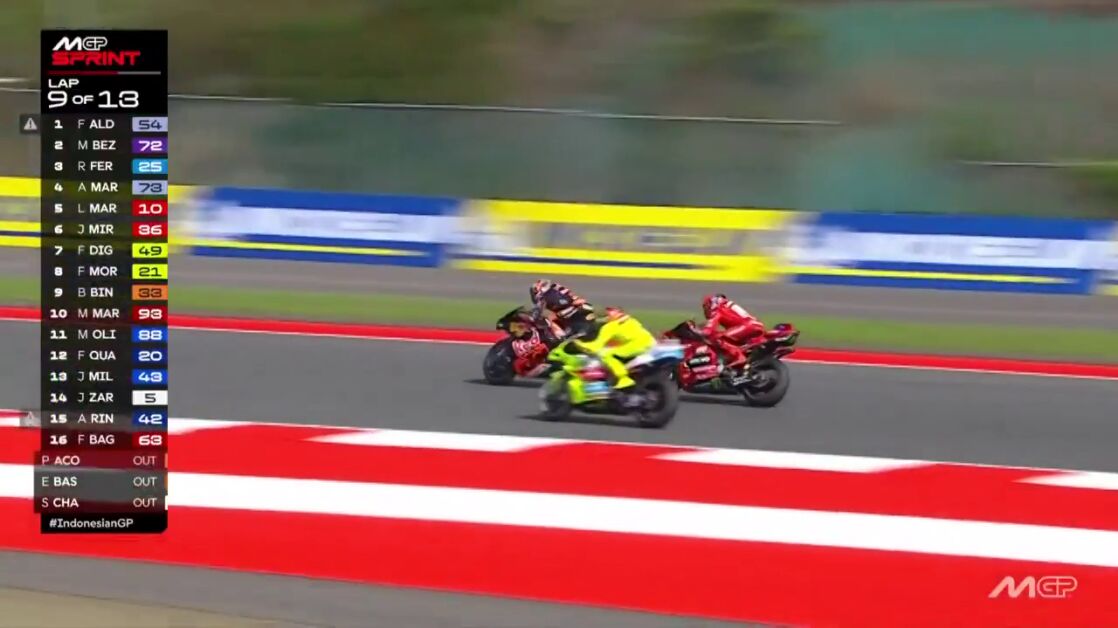 El heptacampeón del mundo de MotoGP protagonizó un doble adelantamiento sensacional que le permitió ganar dos posiciones pero que no evitó que firmara su peor resultado en pista en una 'sprint' esta temporada. Marc ha terminado siendo séptimo aunque ha conseguido algunos puntos. Su hermano Álex ha terminado cuarto y la victoria ha sido para Marco Bezzecchi que le ha arrebatado el triunfo a Fermín Aldeguer en el último suspiro.