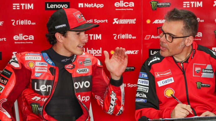 Marc Márquez está dejando a todos alucinados en Ducati. Sabían que era un campeón, pero no eran conscientes de cómo se involucra en absolutamente todo en el día a día. Ha sido Marco Rigamonti, ingeniero del piloto de Cervera, el que ha desvelado que en el equipo están "enamorados" de él.