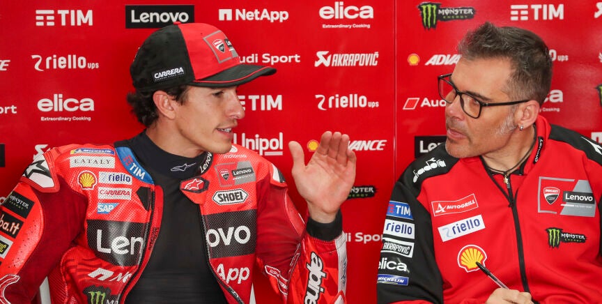 ¿Qué destaca de Márquez? "El carácter humano. La persona. El piloto y el palmarés se conoce, pero el punto de vista humano es excepcional. Sonríe, gasta bromas con nosotros, saluda a todos, agradece a todos, pide disculpas...", dice el de la escudería de Bolonia.
