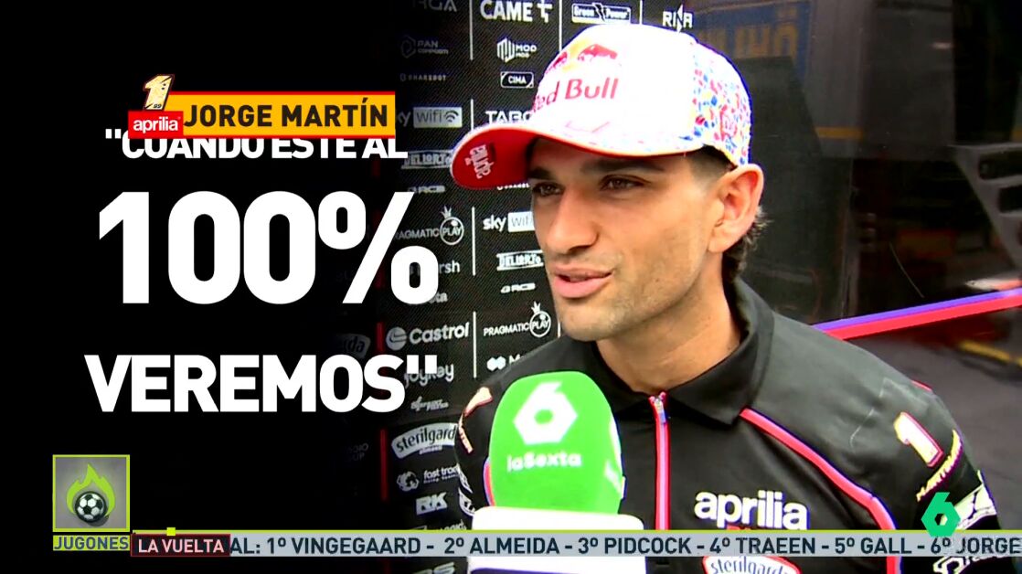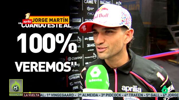 Jorge Martín va paso a paso con la Aprilia. Está encontrando una buena versión y quiere llegar a ese 100%. Sabe que sólo así podrá acercarse a Marc Márquez, aunque ya esta temporada se antoja imposible. Así se lo ha dicho a 'Jugones' en el Gran Premio de Barcelona que se celebra este fin de semana.