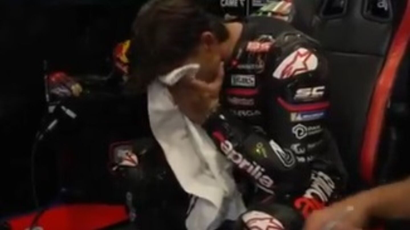 El de San Sebastián de los Reyes lo celebró primero con rabia junto a todo el 'box' de Aprilia y después no pudo contener la emoción. Además, la paz con la escudería boloñesa es un hecho y todo apunta a que piloto y equipo ya miran al futuro de otra manera distinta después de la carrera en Hungría.