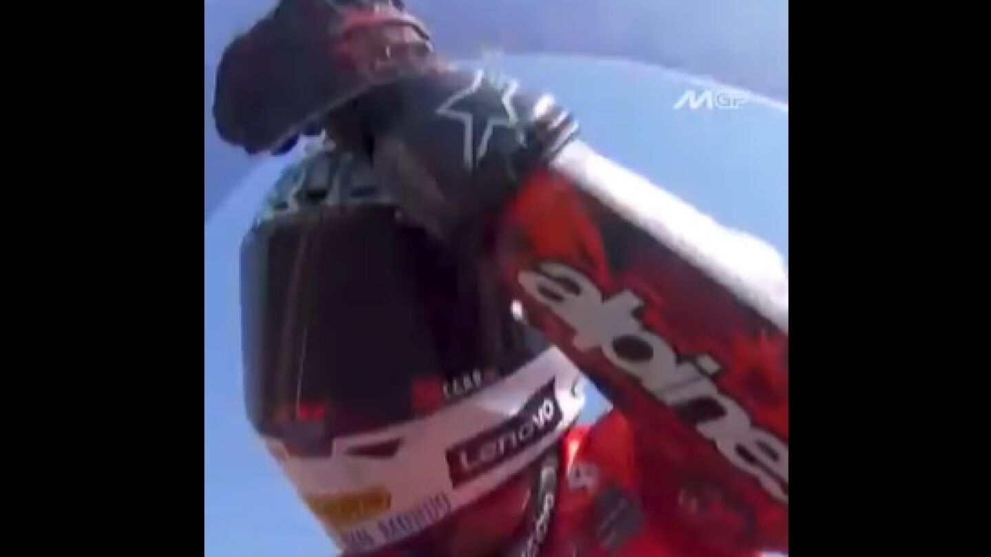 El piloto italiano, que quedó segundo en la clasificación, levantó el brazo cuando vio a Marc aparecer a su lado después de perder la pole.