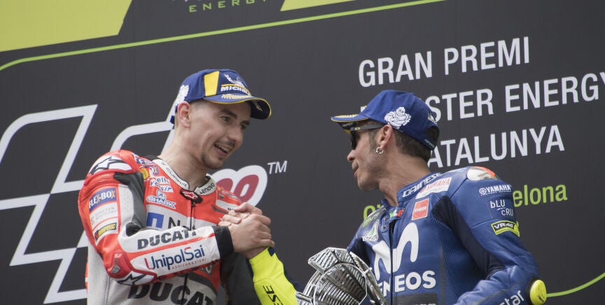 Jorge Lorenzo es tricampeón de MotoGP: 2010, 2012 y 2015. Y en ese último mundial protagonizó una intensa batalla contra Valentino Rossi en la que también se coló Marc Márquez con aquella famosa patada. Ahora el expiloto ha rememorado sus batallas contra el italiano.