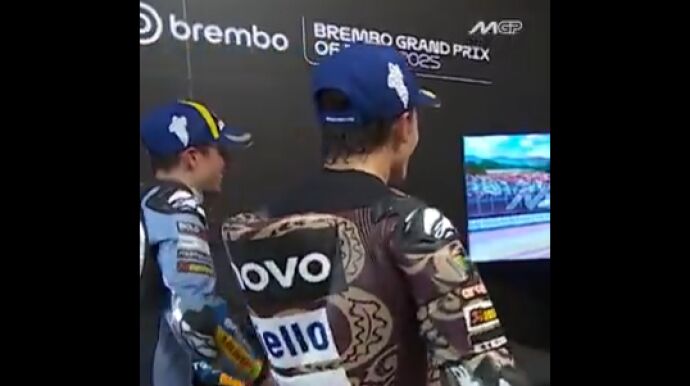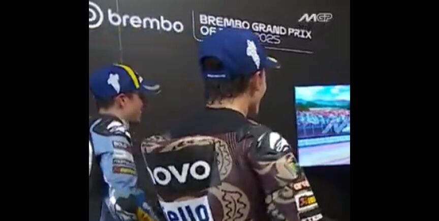 Antes del podio, Marc y Alex Márquez, junto a Fabio Di Giannantonio comentaron las mejores imágenes del Gran Premio. De la lucha inicial con Pecco a la bandera final delante de los aficionados.