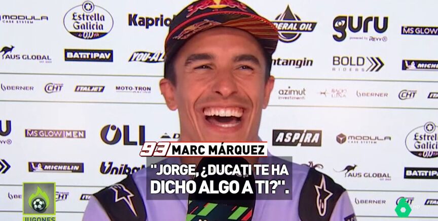 Y ante el micrófono de Atresmedia Marc ha dejado una pregunta para el que es su rival por ese puesto: "¿Jorge, Ducati te ha dicho algo a ti?".