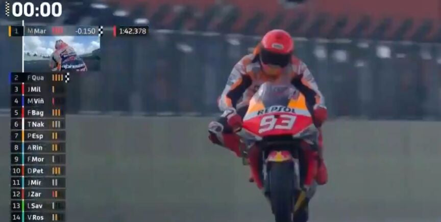 Marc solo ha visto superado su tiempo por Maverick Viñales y Alex Rins, pilotos de Yamaha y Suzuki, respectivamente, y con mucho más ritmo de competición que el '93'. Aunque solo ha rodado 14 vueltas, sin duda el seis veces campeón de MotoGP ha vuelto a lo grande.