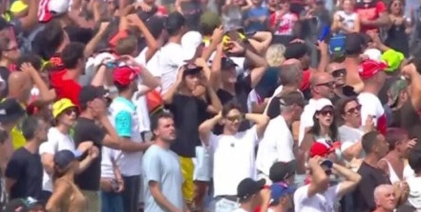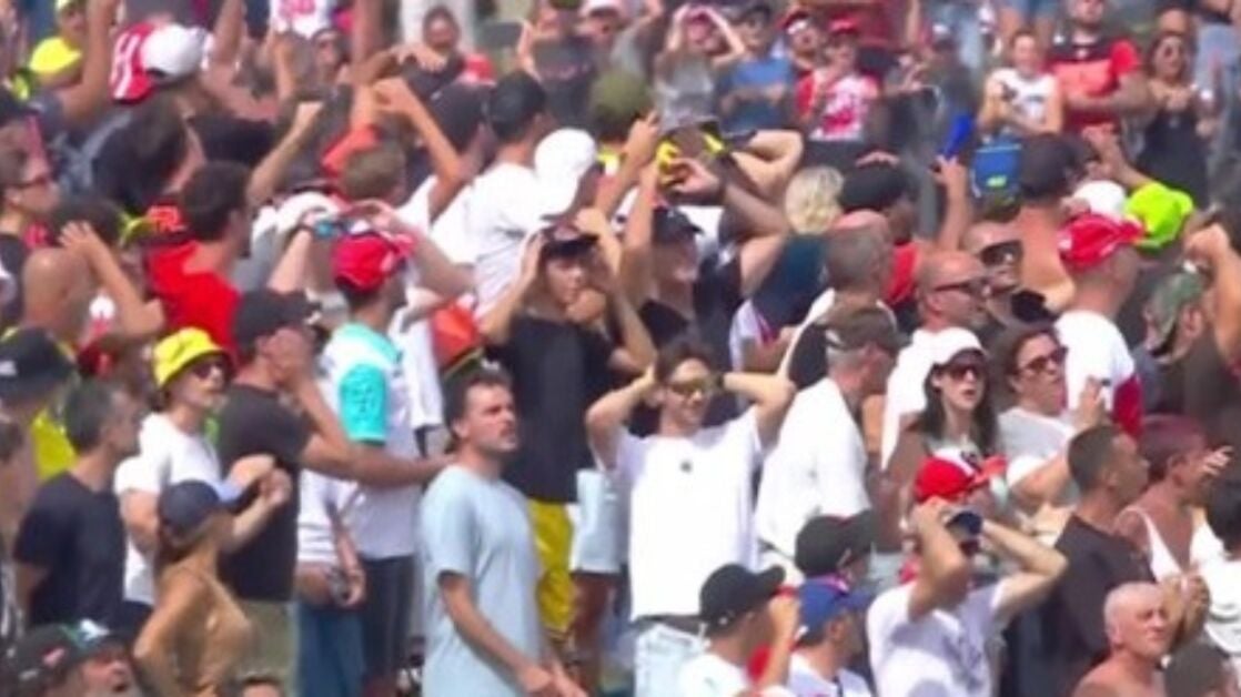 Durante la 'sprint' se viralizó una imagen en la que algunos aficionados celebraban la caída de Marc. Durante la carrera, tras el adelantamiento de Márquez a Bezzecchi, las caras eran algo distintas.