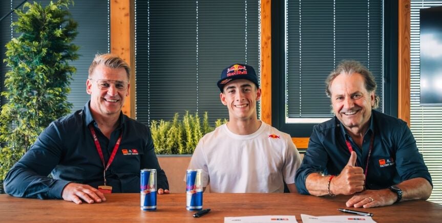 "Se unirá a Red Bull KTM en un contrato multianual", expone el equipo con un vídeo en el que se ve a Acosta uniendo a su casco una pegatina de la marca de las bebidas energéticas.