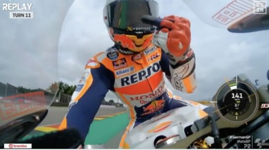 Marc Márquez dejó un gesto de desesperación absoluta haciéndole una peineta a su propia moto después de salvar una caída.