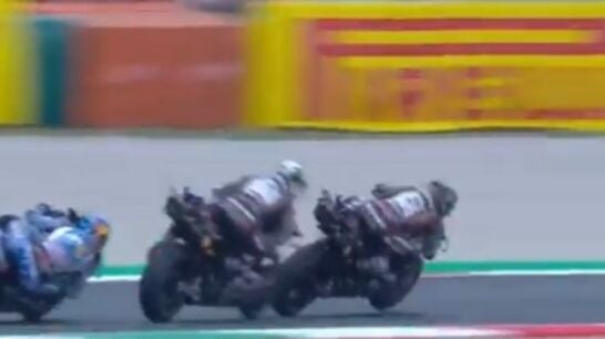 El comienzo de la carrera fue espectacular pero la adrenalina del inicio casi provocó que Marc y 'Pecco' se fueran al suelo cuando luchaban por el liderato.
