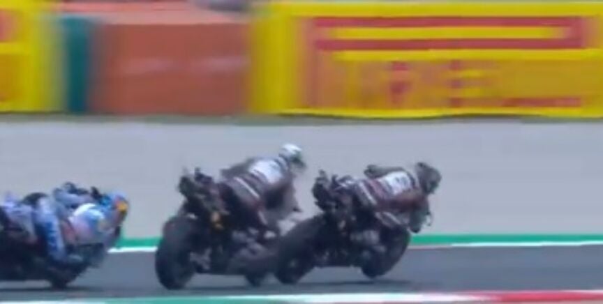 Inmediatamente frenó y no pudo evitar perder la posición ante Álex pero si se salvó de irse al suelo y de probablemente haber mandado al suelo a su compañero de equipo en un lance que habría podido ser un drama para Ducati.
