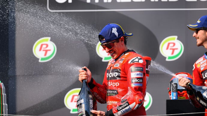 "En Tailandia empezamos de la mejor manera posible, con dos victorias en la carrera y el sprint. Pero tenemos que centrarnos en trabajar lo mejor posible. En el pasado me ha ido bien en Termas, pero también cometí errores aquí", dice el compañero de Pecco Bagnaia, que buscará su segunda victoria seguida.