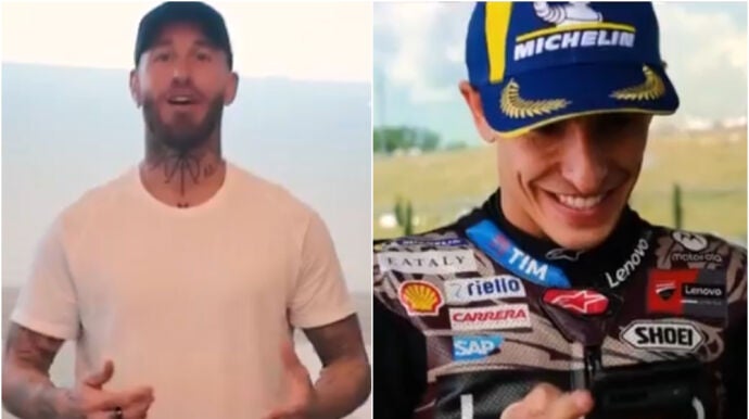 "Espero que te dé mucha suerte, que la guardes con mucho cariño y que sea una temporada de éxito para ti. Espero verte pronto", expresó Ramos en un vídeo mostrado en las redes sociales de MotoGP donde el propio Marc reaccionaba a la secuencia.