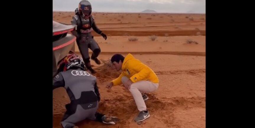 Sainz se quedó parado en el kilómetro 213 y estuvo durante media hora reparando la suspensión trasera izquierda. Fue en ese momento cuando volvió a aparecer en escena Sainz Jr, tal y como hiciera el lunes indicándole a su padre que bajara la velocidad en una zona muy peligrosa de rocas.