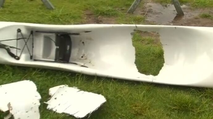 Un tiburón blanco ataca a un piragüista en plena competición: así quedó su embarcación