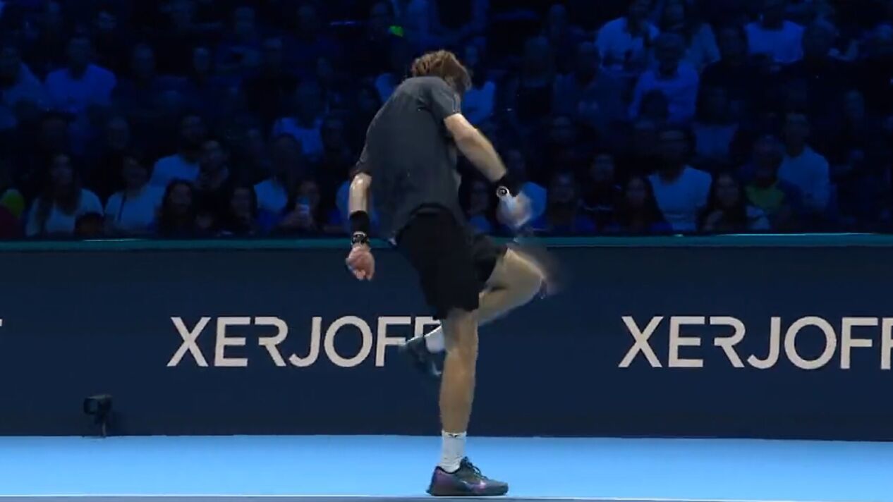 Víctima de la desesperación más absoluta tras perder el primer set, Andrey Rublev ha cargado contra sí mismo asestándose seis raquetazos en la rodilla que le han provocado una herida.