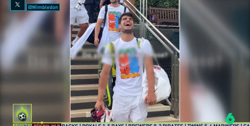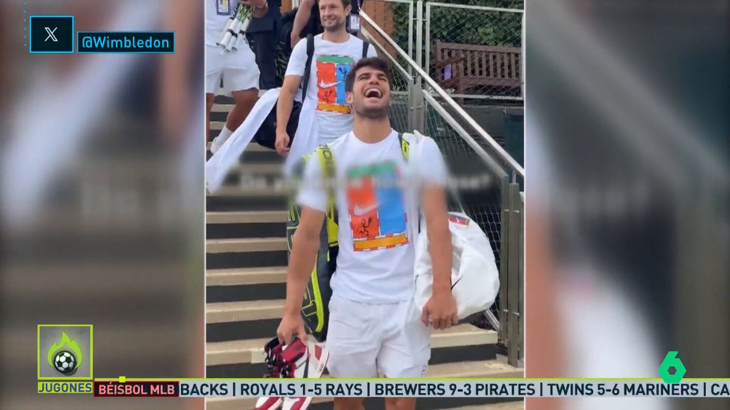 Tras ganar Queen's dos semanas después de alzar Roland Garros y una vez ha tenido unos días de descanso en Londres, a Carlos Alcaraz ya se le ha visto en el All England Club.