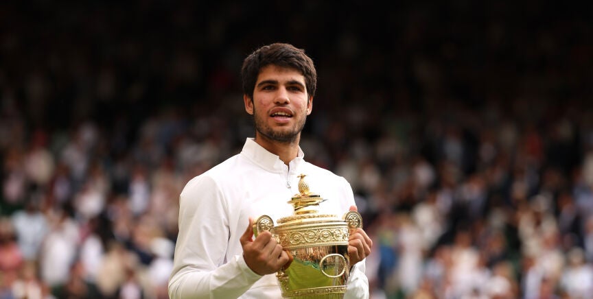 Carlos Alcaraz es el nuevo rey de Wimbledon. El tenista español se ha impuesto a Novak Djokovic en cinco sets en una de las finales más largas y emocionantes de la historia del torneo británico.