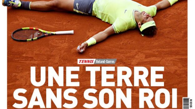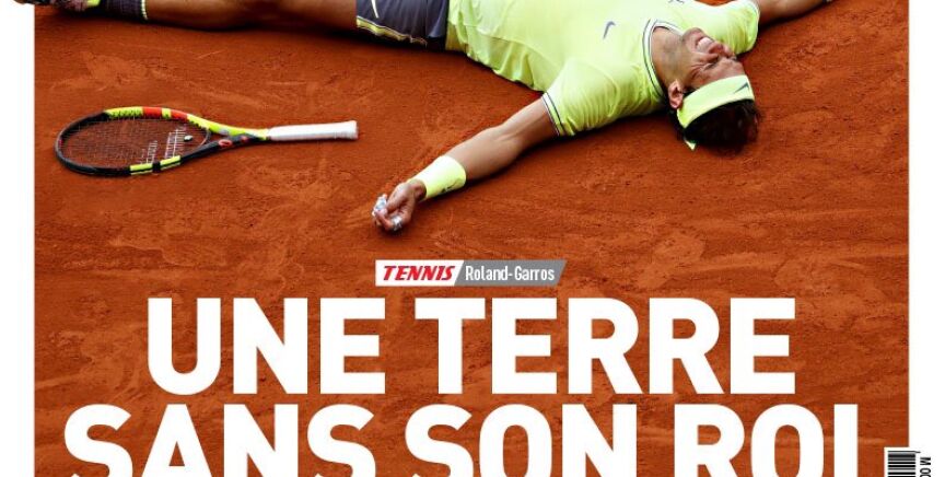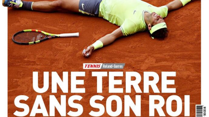 "Una tierra sin su rey", reza una primera página con el tenista español tirado sobre la arcilla de la Philippe Chatrier.
