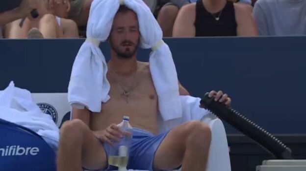 Las altas temperaturas son un problema que se ha comentado de forma recurrente de cara a la gira americana y Daniil Medvedev se ha vistovisiblemente afectado por las mismas.