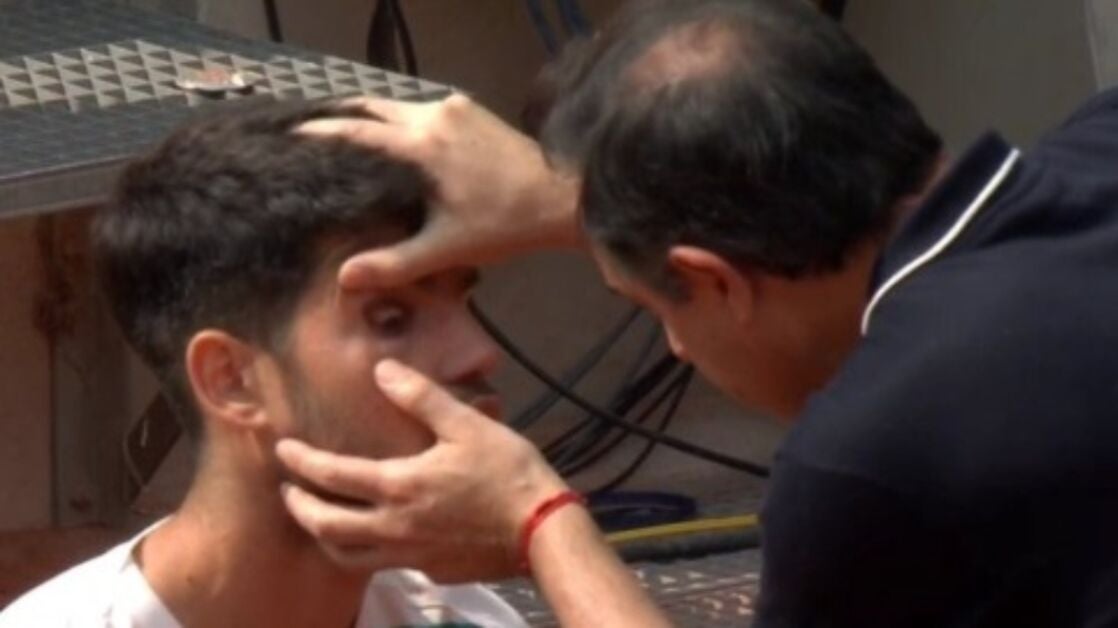 Alcaraz ha dado muestras evidentes de que la molestia estaba siendo severa tocándose varias veces el ojo después de ser tratado durante unos minutos. No obstante, después de varios minutos, Carlos ha dejado de mostrar malestar dando a entender que ya estaba algo mejor.