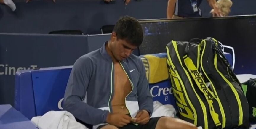 Carlos Alcaraz hizo un gran repertorio de coraje cayendo ante Novak Djokovic de la mejor forma posible. Sin embargo, el tenista murciano terminó desolado en el banco tras acabar la final de Cincinnati que duró casi cuatro horas, 7-5, 6-7(7) y 6-7(4).