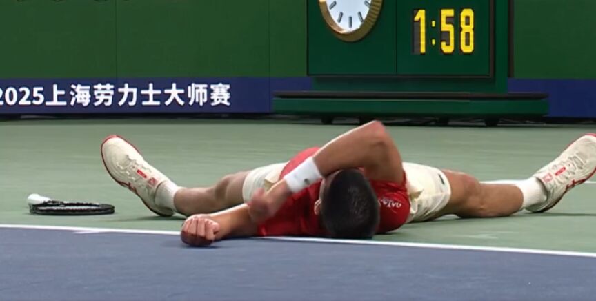 Ya en la segunda manga, tras caer por 7-5 en un set de 74 minutos, el serbio cayo rendido al suelo y el fisioterapeuta y la médico le tomaron sus constantes vitales para saber si estaba en condiciones de continuar.