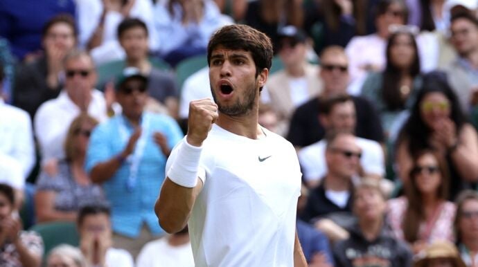 Carlos Alcaraz sigue su camino imparable hasta la final de Wimbledon. El murciano, tras sufrir algo en los dos partidos anteriores ante Nicolás Jarry y Matteo Berrettini, se impuso en tres sets a su viejo conocido Holger Rune.