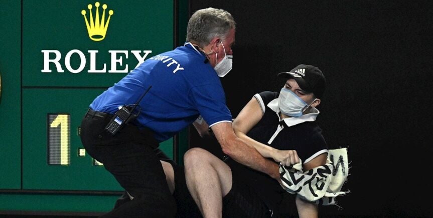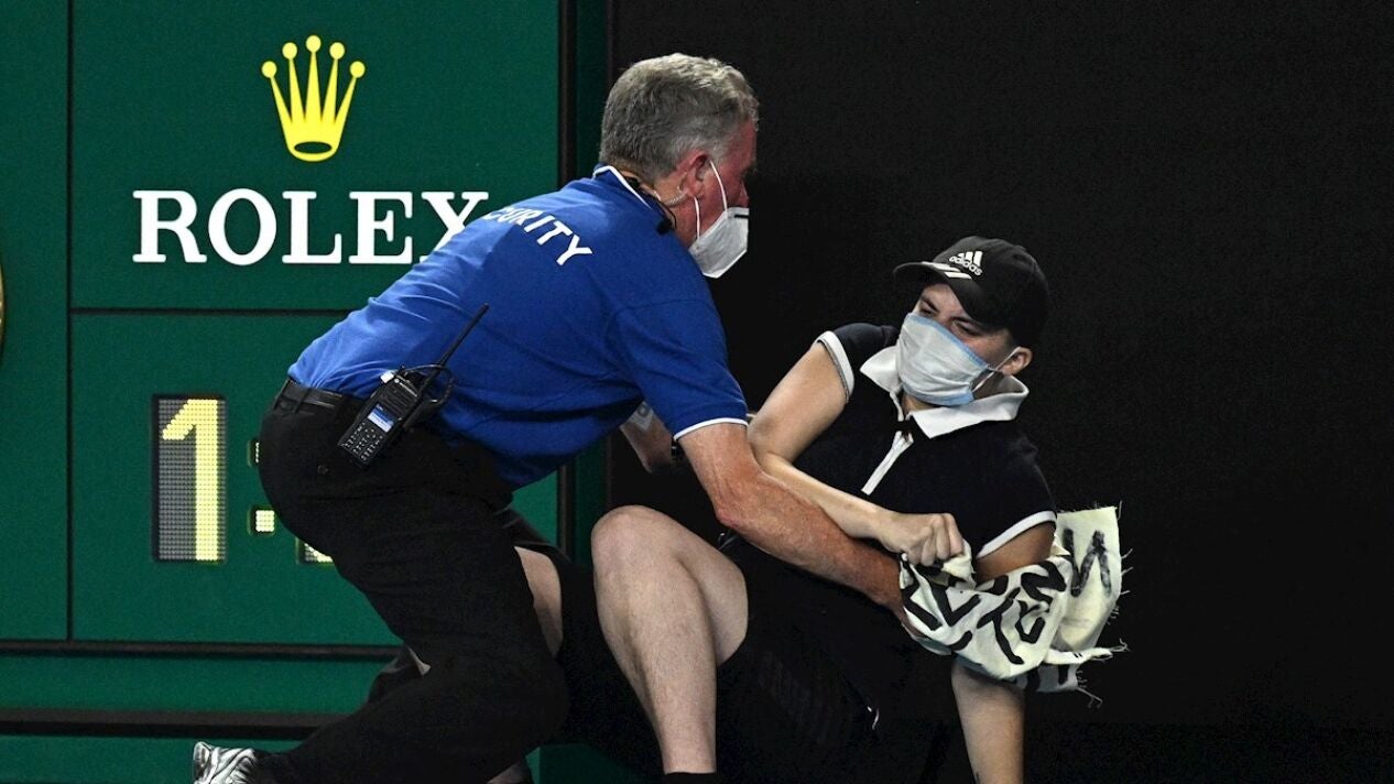 La continuidad de la final del Open de Australia 2022 se ha visto interrumpida por una espontánea, que saltó a la pista en un momento decisivo del segundo set. Rafa Nadal gozaba de su servicio para empatar el partido cuando la joven detuvo el encuentro.